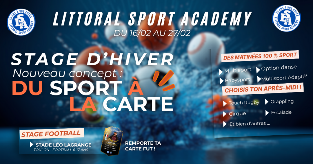 Littoral Sport Academy est une association sportive loi 1901 située sur l’aire Toulonnaise. Elle a comme objectif la découverte du monde du sport loisir pour les enfants. Nos adhérents évoluent à leur rythme tout au long de l’année, accompagnés par nos éducateurs sportif diplômés.